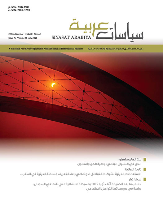 صدر عن المركز العربي للأبحاث ودراسة السياسات ومعهد الدوحة للدراسات العليا العدد الخامس والسبعون من الدورية العلمية المحكّمة "سياسات عربية"، التي تُعنى بالعلوم السياسية والعلاقات الدولية، وتصدر كلّ شهرين. تضمّن العدد الدراسات الآتية: "الحق في النسيان الرقمي: جدلية الحق والقانون" لعزة الحاج سليمان، و"إدارة التنوع العرقي والاجتماعي في المؤسسة العسكرية: دراسة مقارنة بين المملكة العربية السعودية والولايات المتحدة الأميركية" لمنيرة الخيارين، و"الاستعمالات الدينية لشبكات التواصل الاجتماعي: إعادة تعريف السلطة الدينية في المغرب" لنادية العالية، و"خطاب ما بعد الحقيقة أثناء ثورة 2019 والمرحلة الانتقالية التي تلتها في السودان: دراسة في دور وسائط التواصل الاجتماعي" لعديلة تبار، و"استخدام وسائط التواصل الاجتماعي والثقة والمراقبة في المنطقة العربية: رؤى من المؤشر العربي 2024/ 2025" لليلى عمر ووجد بشارة ونور الشيباني. وفي باب "دراسة مترجمة"، نُشرت ترجمة محمد حمشي لدراسة كريستيان فوكس "من الوضعية الرقمية والبيانات الضخمة الإدارية نحو الأبحاث الرقمية وأبحاث وسائط التواصل الاجتماعي النقدية!". أما باب "التوثيق" فتضمّن أهم "محطات التحوّل الديمقراطي في الوطن العربي" ووثائقه و"الوقائع الفلسطينية"، في المدة 1 أيار/ مايو - 30 حزيران/ يونيو 2025. وفي باب "مراجعات الكتب"، قدّم عادل زقاغ مراجعة بعنوان "التحول الكوانتي في حقل العلاقات الدولية: مراجعة نقدية لكتابَي "كَمْيَنة النقد" و"حقل العلاقات الدولية الكوانتي".​